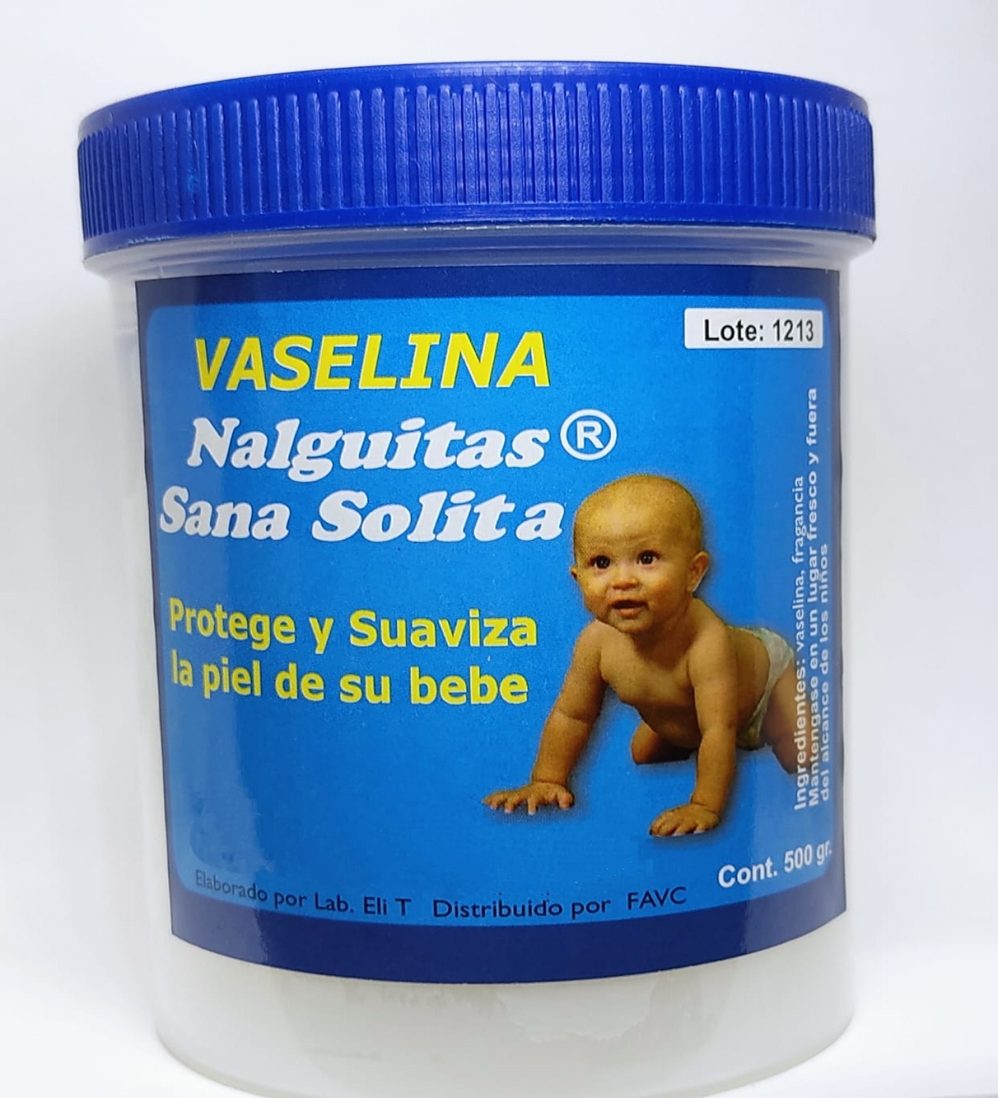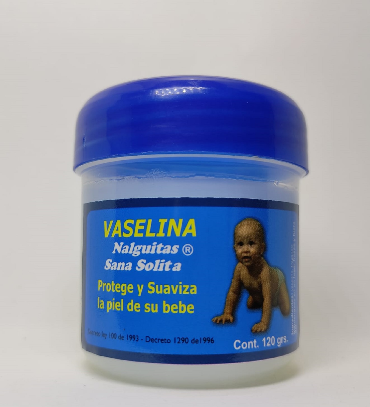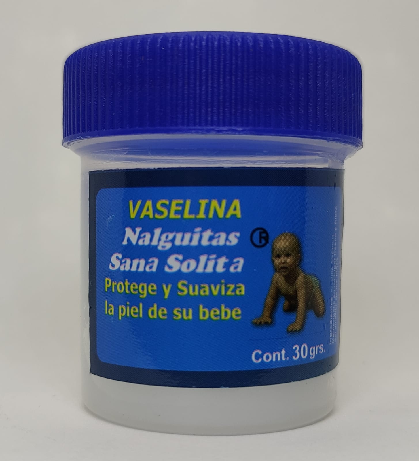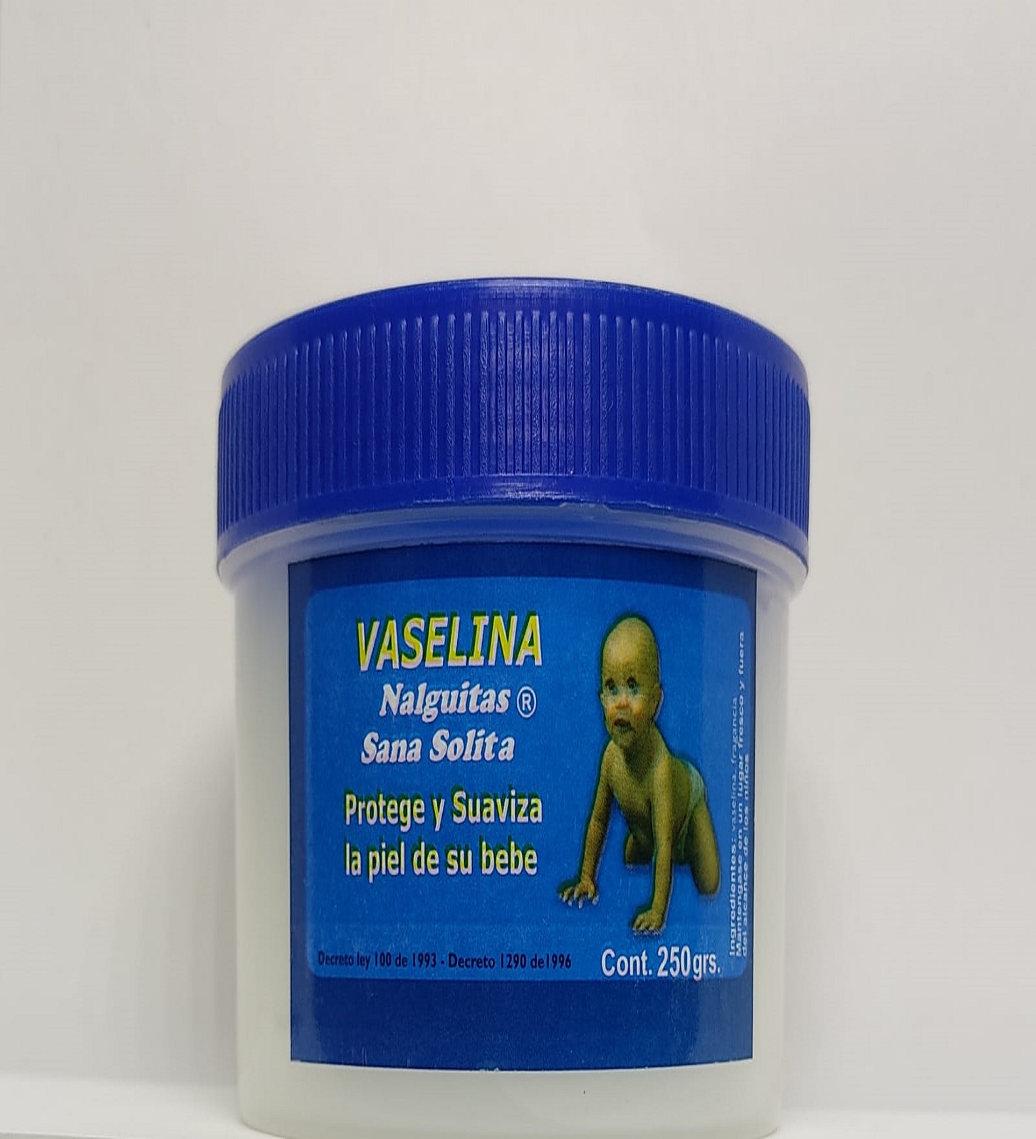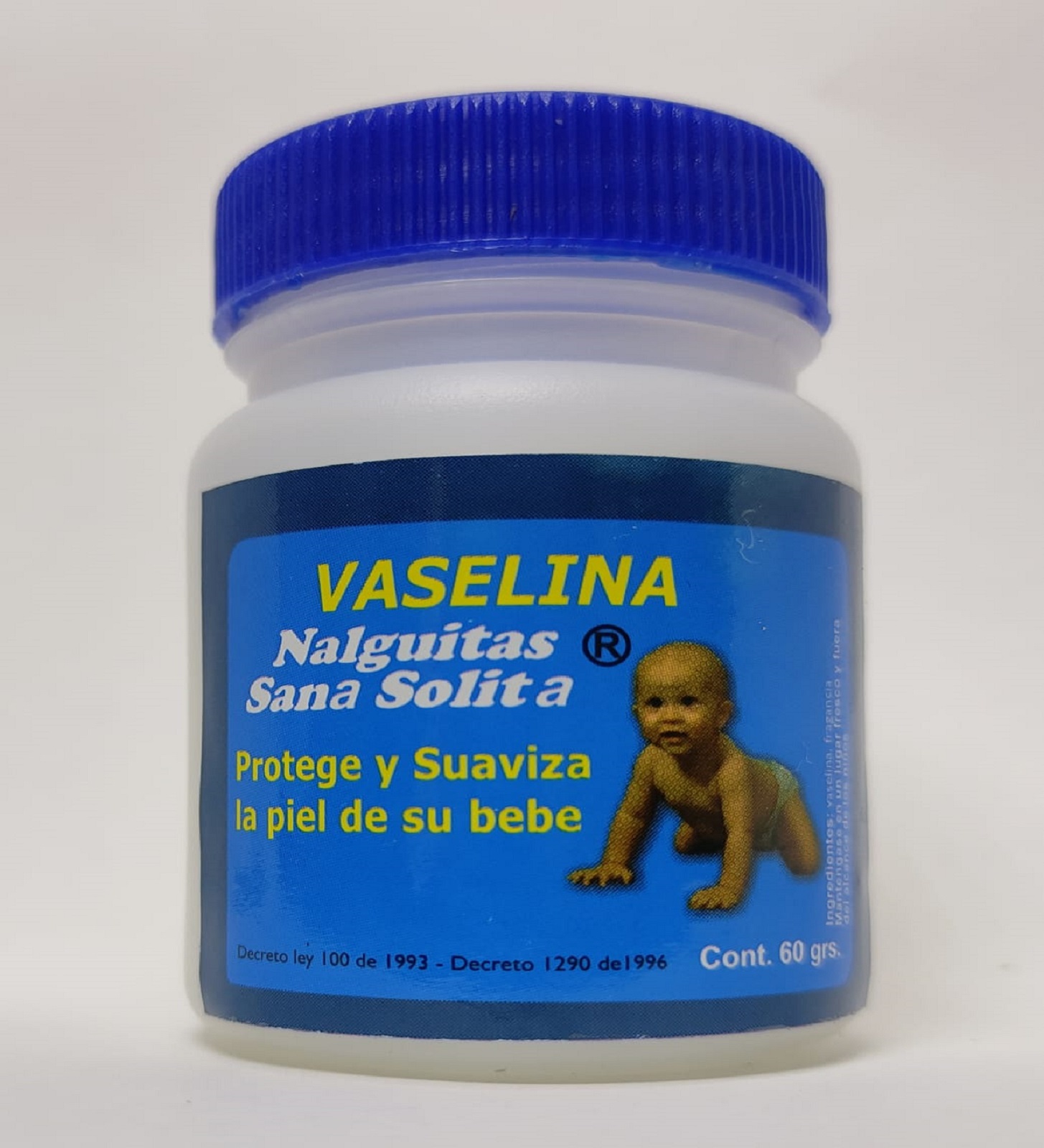La empresa de vaselina Nalguitas sana solita antes llamada colita sana, es una empresa familiar que surge en el año 2010 con el objetivo de satisfacer la necesidad cosmetológica en el cuidado de la piel. Nalguitas Sana Solita se encarga de la distribución y venta de vaselina, y para el año 2011 saco otros nuevos productos como lo son, comida para pelo y brilla pelo y su objetivo es el cuidado capilar. Las cualidades de la empresa son la calidad, la autenticidad y bienestar.